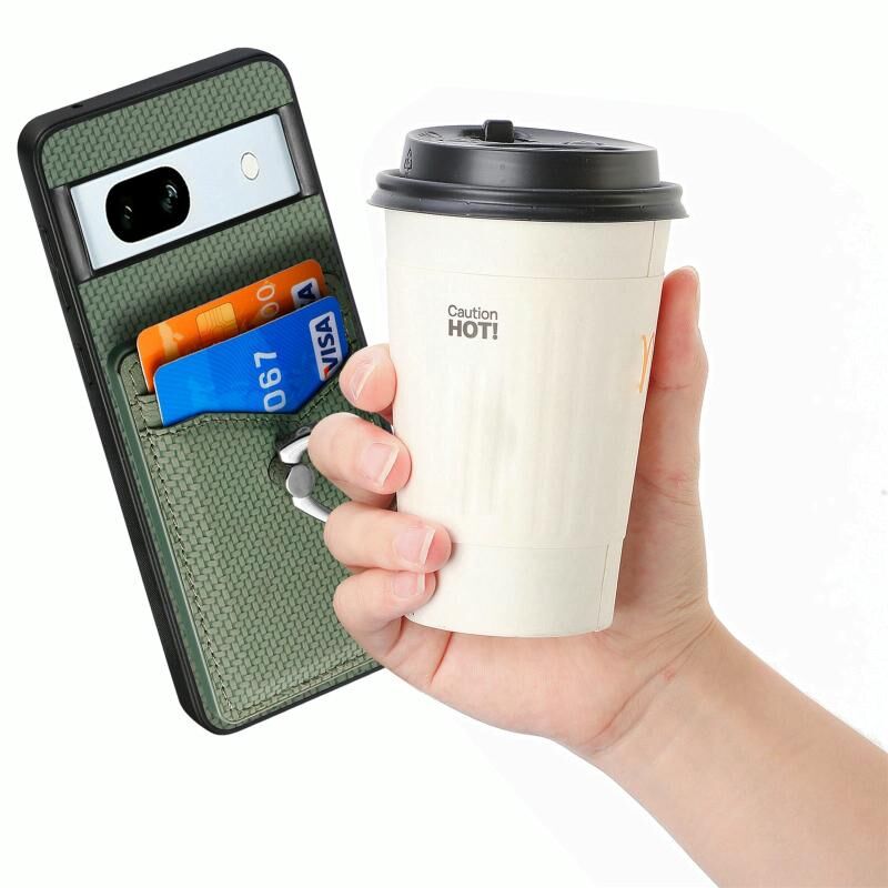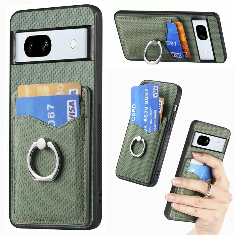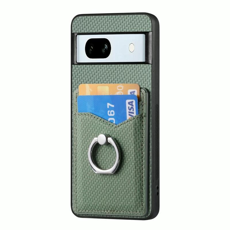 Για το Google Pixel 7A Carbon Fiber κάρτα πορτοφόλι δαχτυλίδι κάτοχος θήκη τηλεφώνου (πράσινο)
