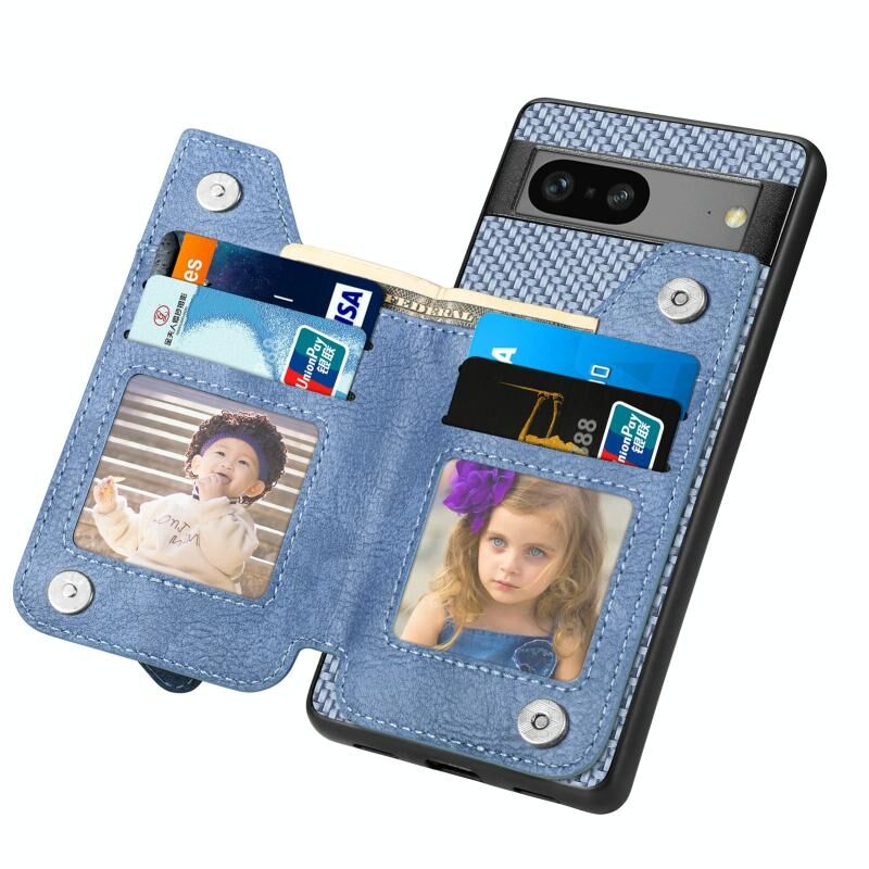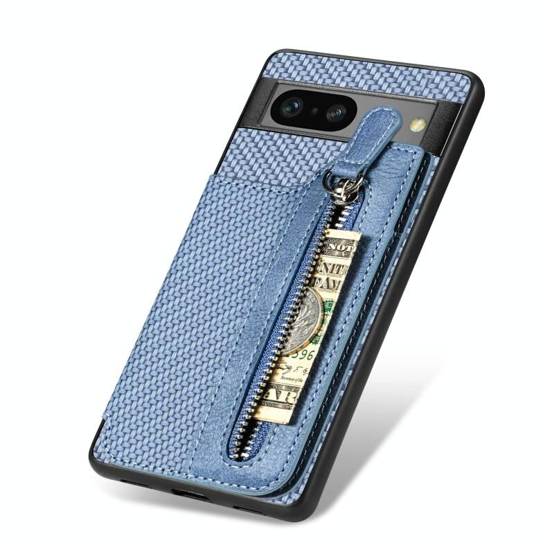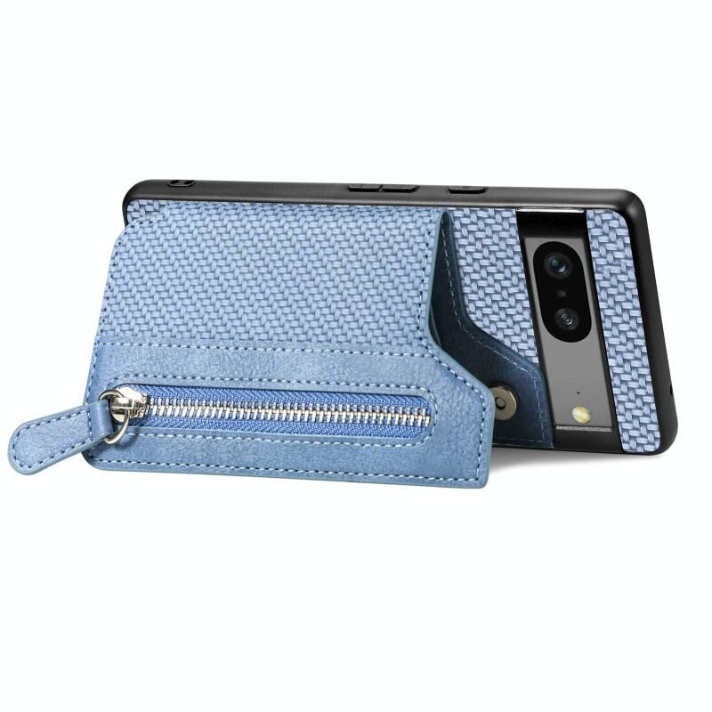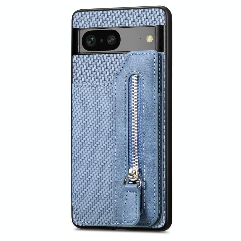 Για το Google Pixel 7A Carbon Fiber Flip φερμουάρ Wallet υπόθεση τηλεφώνου (μπλε)