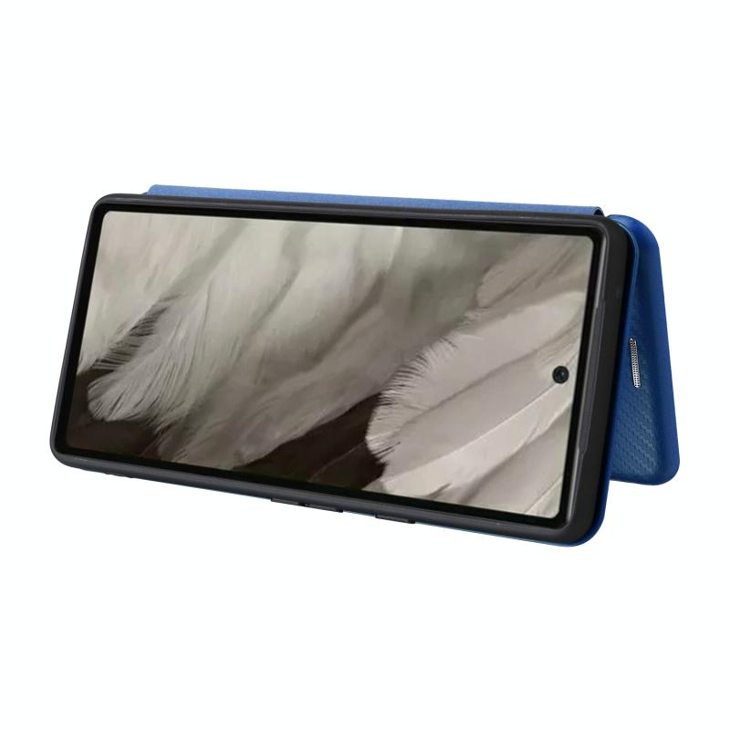 Θήκη τηλεφώνου από δέρμα με ανάγλυφη υφή ανθρακονημάτων για Google Pixel 7a (Πράσινο)