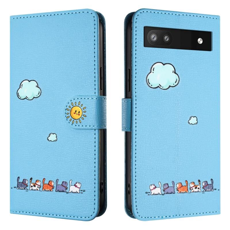 For Google Pixel 7a Cartoon Cats Leather Phone Case(Blue)
