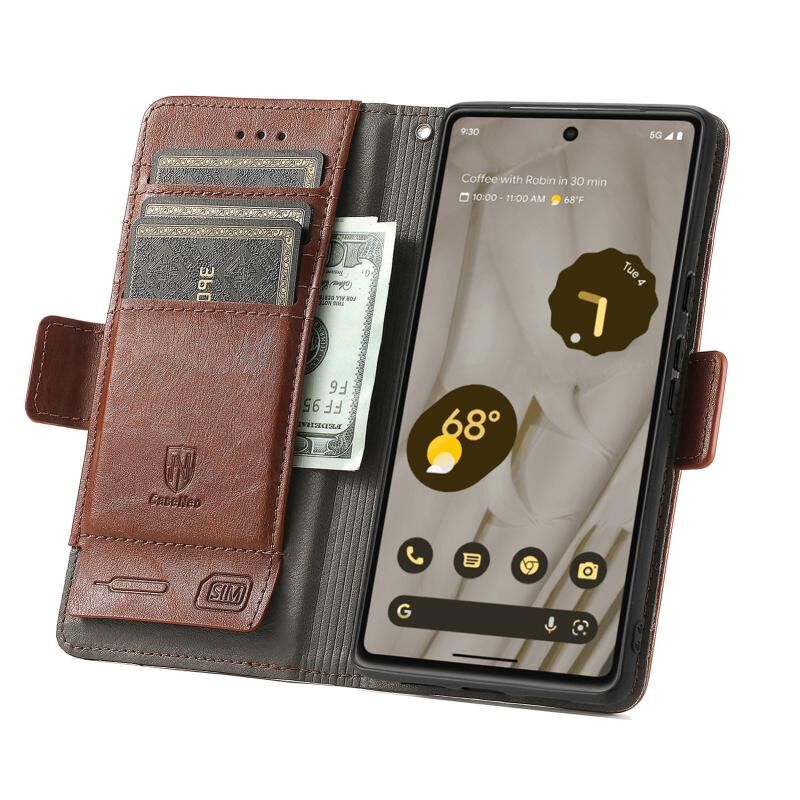 Για το Google Pixel 7A CaseNeo Splicing Διπλή μαγνητική πόρπη δερμάτινη θήκη τηλεφώνου (καφέ)