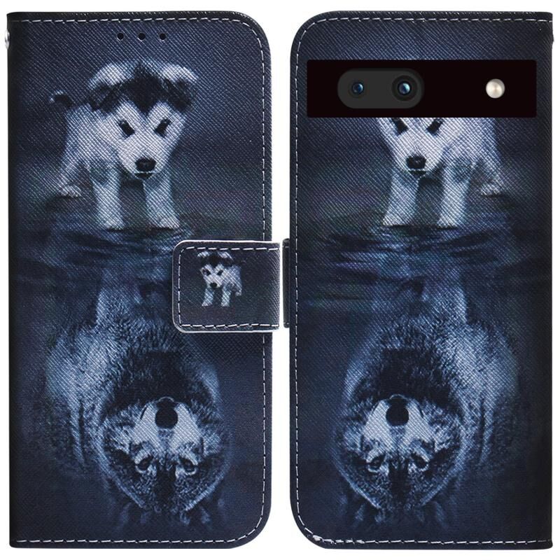 Θήκη τηλεφώνου από δέρμα με σχέδιο flip σε χρώματα για Google Pixel 7a (Λύκος και Σκύλος)