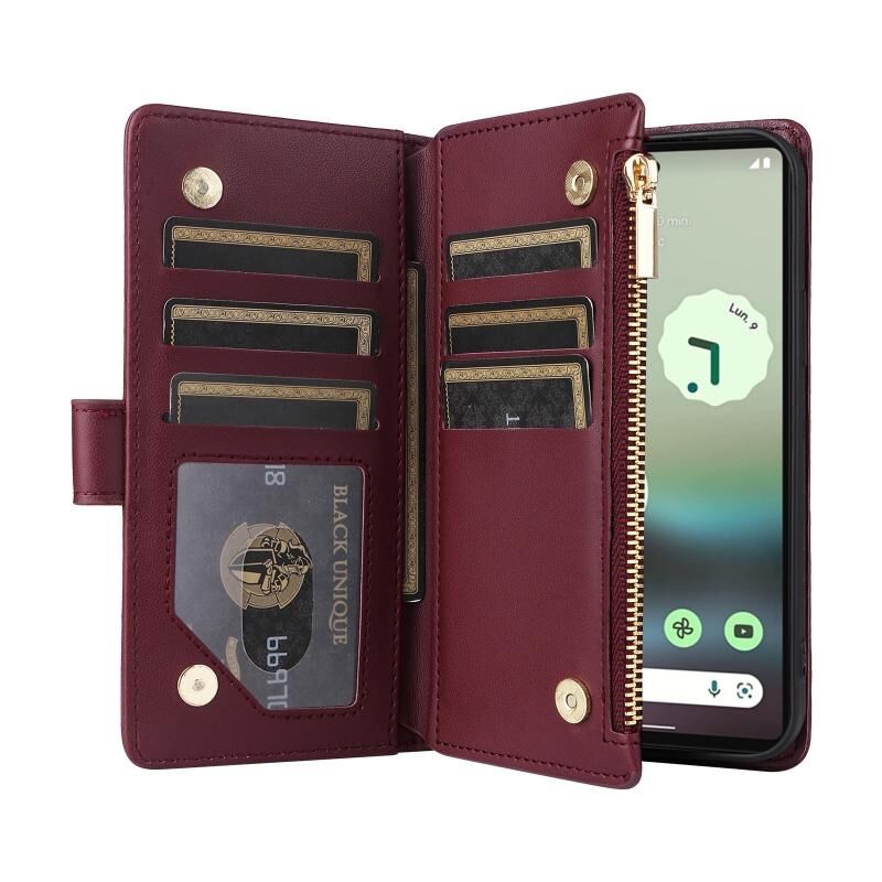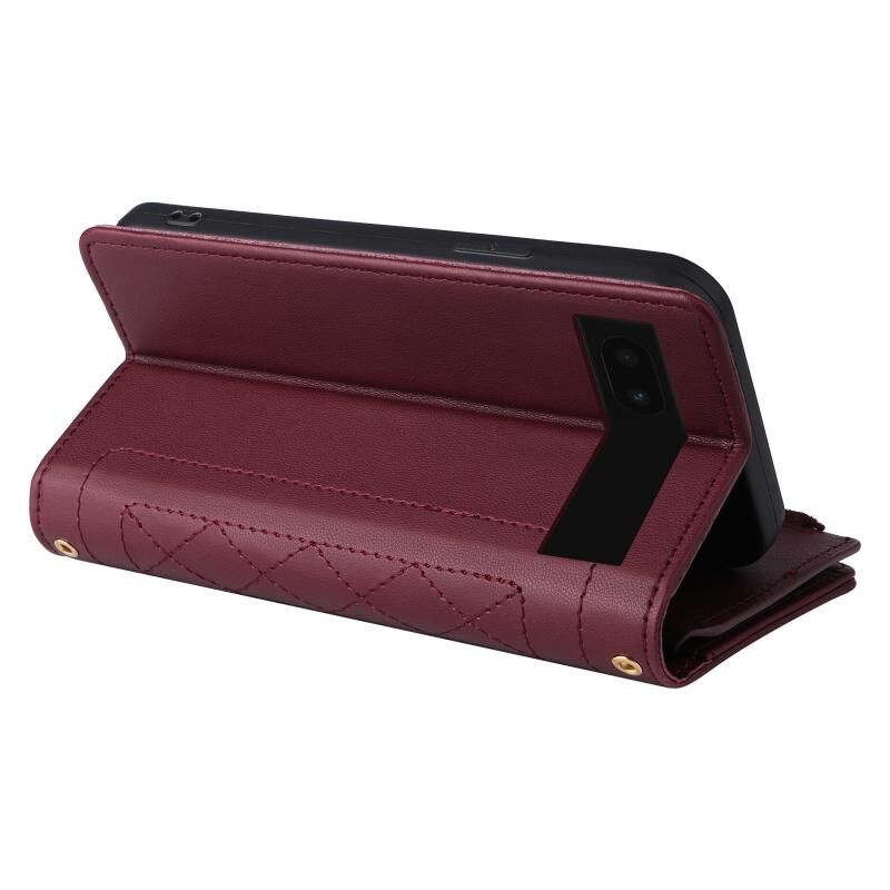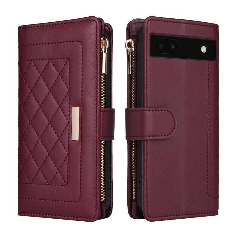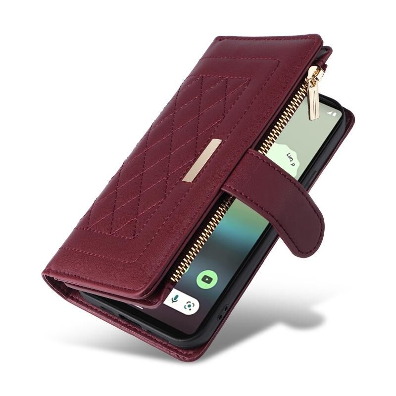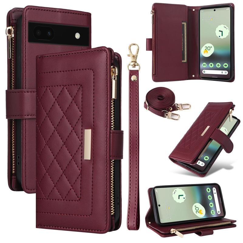 Για το Google Pixel 7a Crossbody φερμουάρ πορτοφόλι Rhombus δερμάτινη θήκη τηλεφώνου (κόκκινο κρασί)