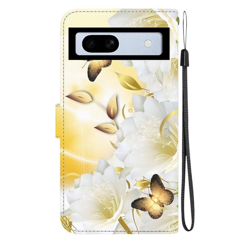 For Google Pixel 7a Crystal Texture Colored Drawing Leather Phone Case(Gold Butterfly Epiphyllum)