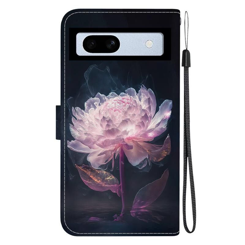 For Google Pixel 7a Crystal Texture Colored Drawing Leather Phone Case(Purple Peony)