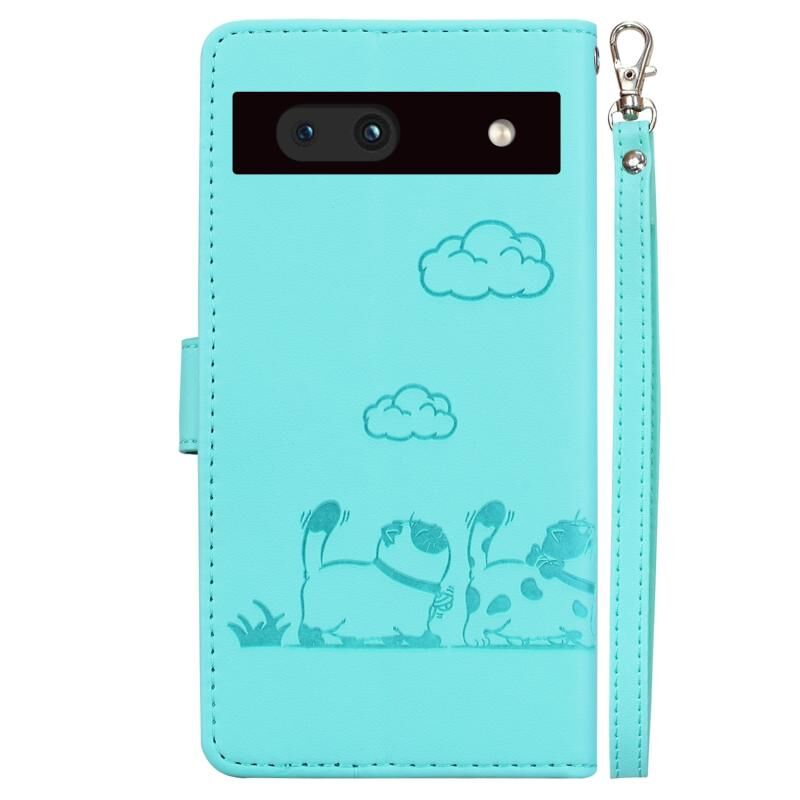 Θήκη τηλεφώνου από δέρμα με χαριτωμένες γάτες για Google Pixel 7a (Χρυσό ροζ) με προστασία RFID