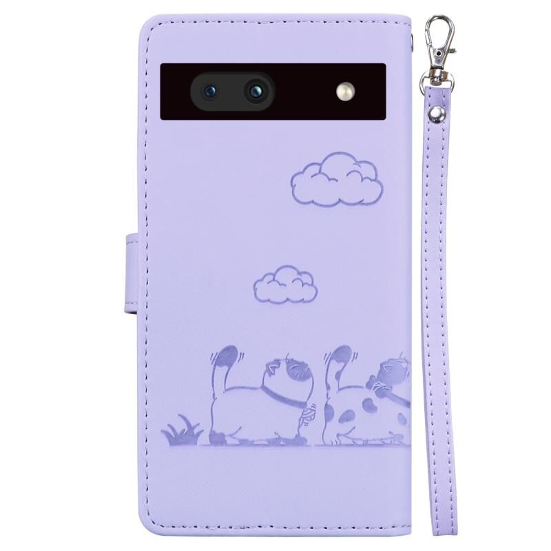 Θήκη τηλεφώνου από δέρμα με χαριτωμένες γάτες για Google Pixel 7a (Χρυσό ροζ) με προστασία RFID