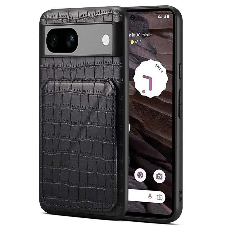 For Google Pixel 7a Denior Crocodile Texture Holder Electroplating Phone Case(Black) (Denior)