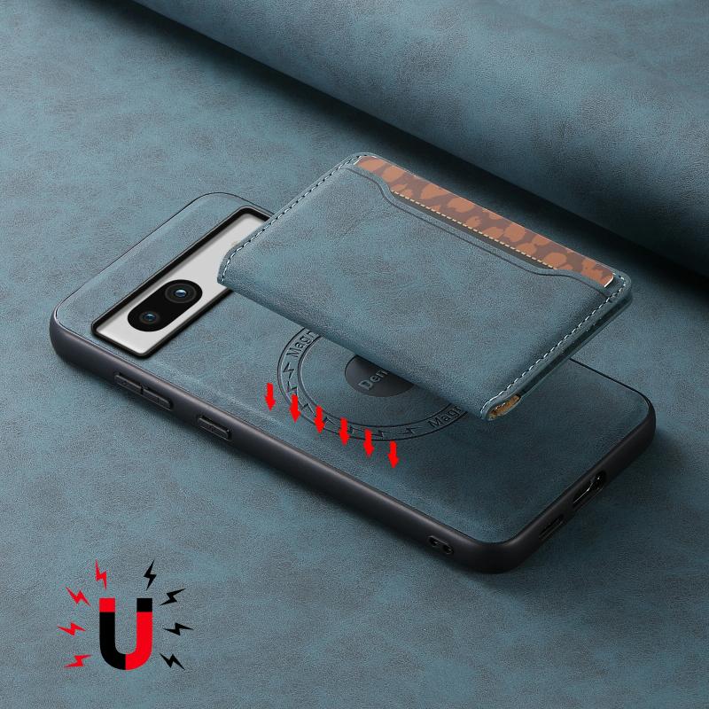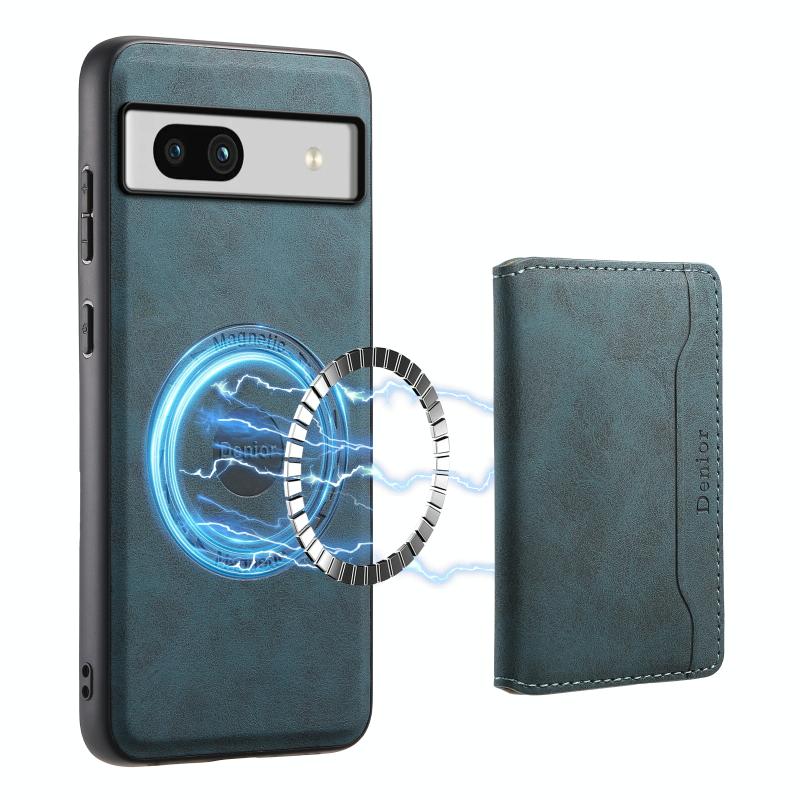 For Google Pixel 7a Denior D13 Retro Texture Leather MagSafe Card Bag Phone Case(Blue) (Denior)