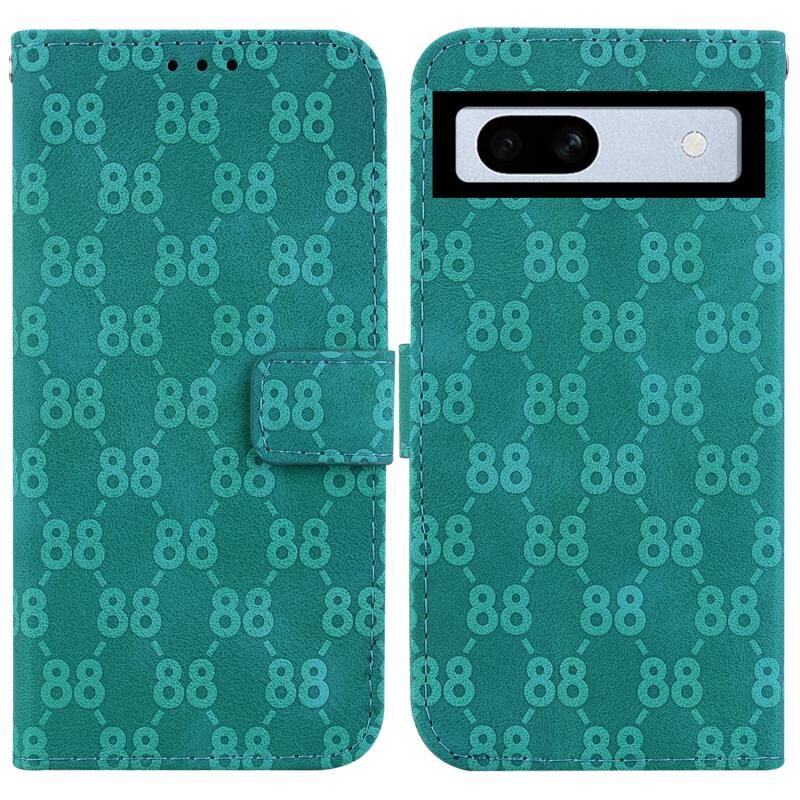 Θήκη τηλεφώνου από δέρμα με ανάγλυφο διπλό σχέδιο σε σχήμα 8 για Google Pixel 7a (Πράσινο)