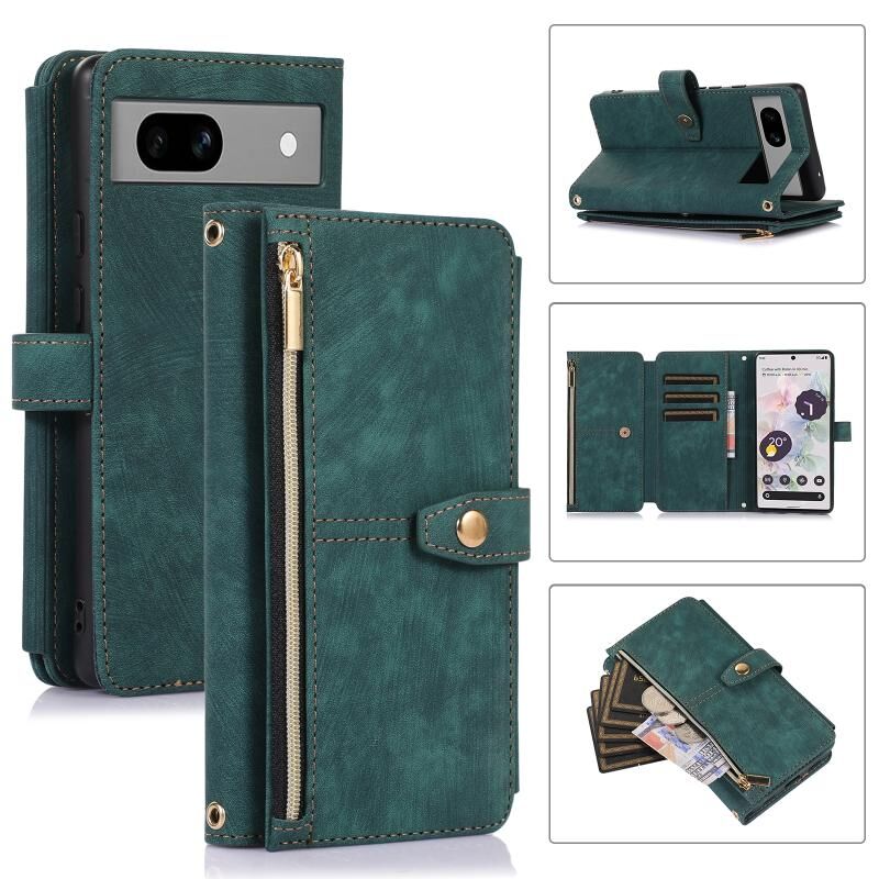 Για το Google Pixel 7a Dream 9-Card πορτοφόλι φερμουάρ τσάντα δερμάτινη θήκη τηλεφώνου (πράσινο)