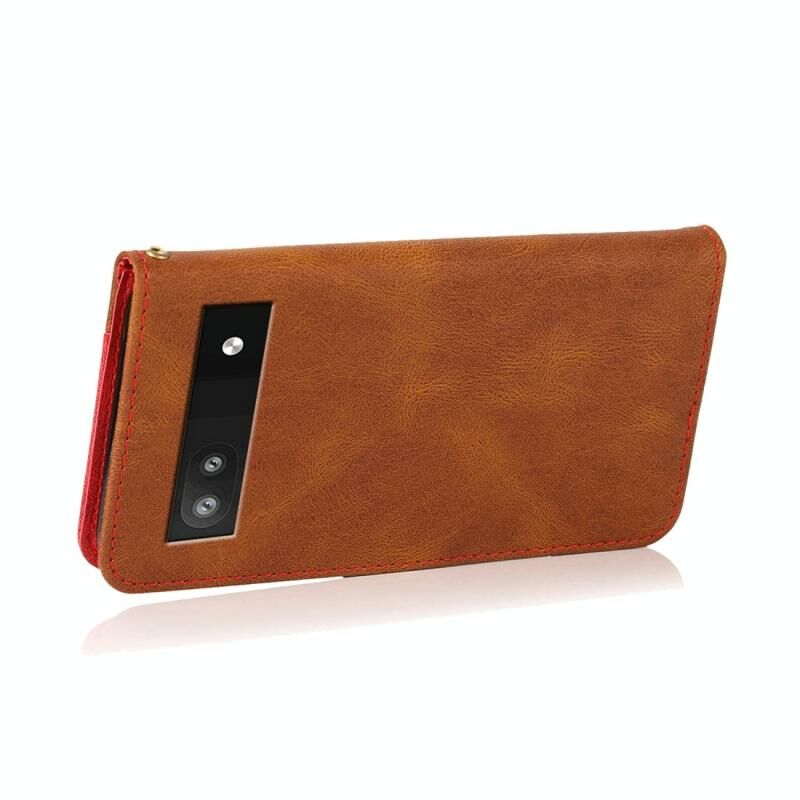 Για το Google Pixel 7a Διπλό χρώμα ραφή δερμάτινη θήκη τηλεφώνου (καφέ κόκκινο)