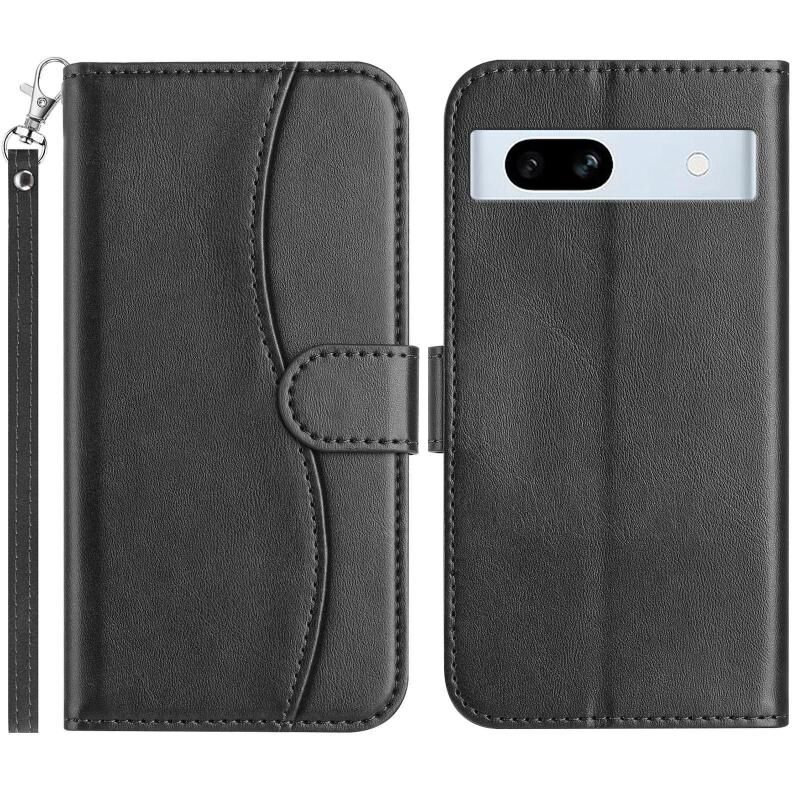 For Google Pixel 7a Dual-Folded S-shape Leather Phone Case(Black)