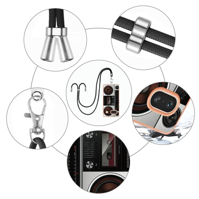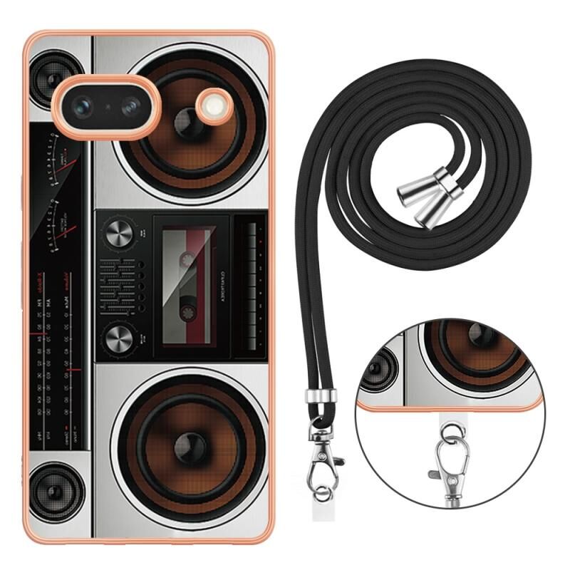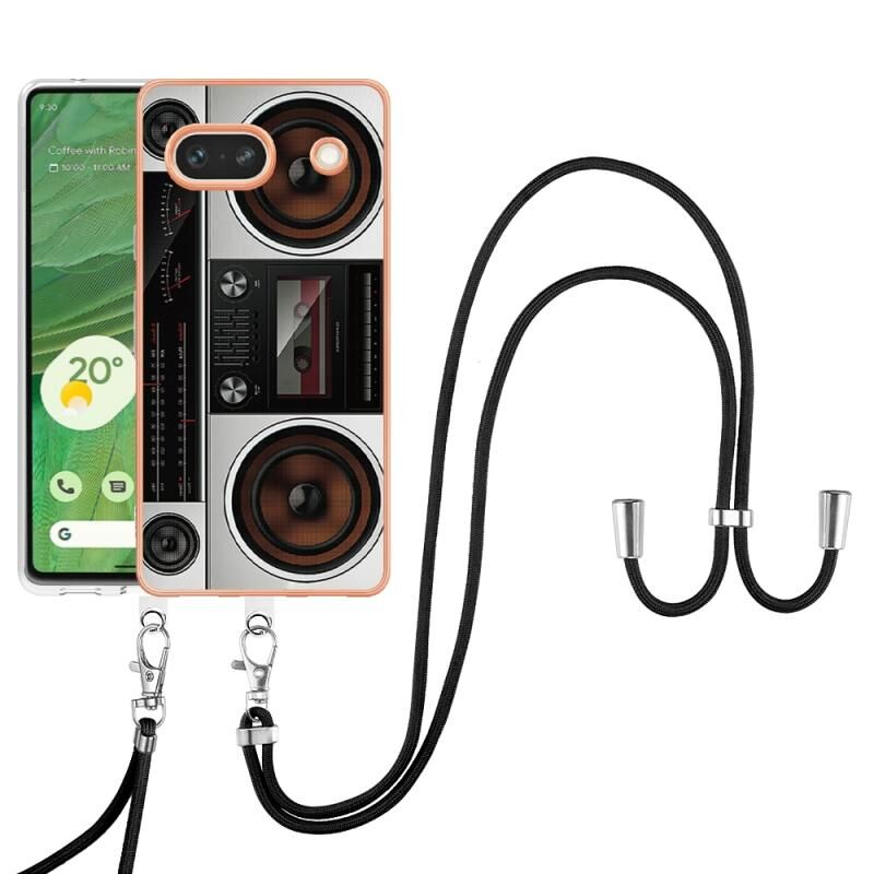 Θήκη τηλεφώνου για Google Pixel 7a με επιμετάλλωση, διπλής όψης IMD με κορδόνι (Ρετρό Ραδιόφωνο)