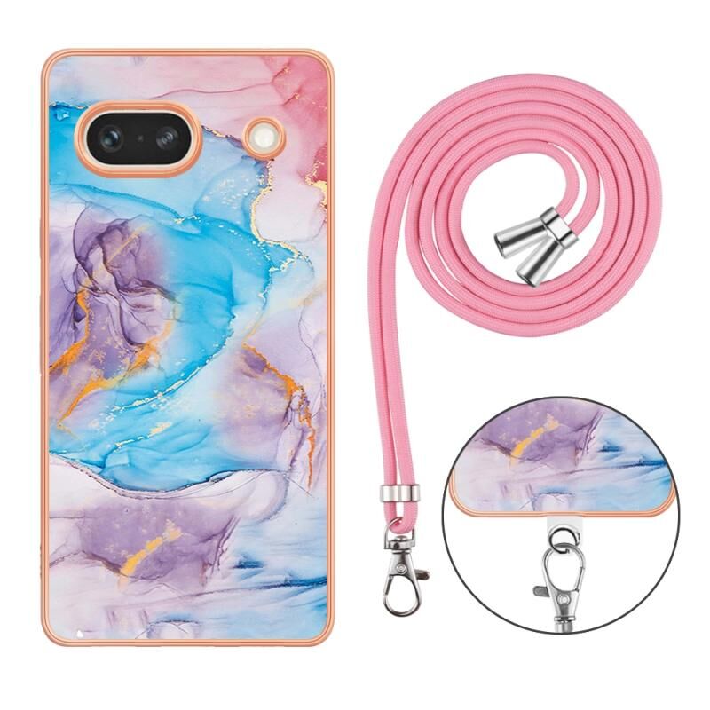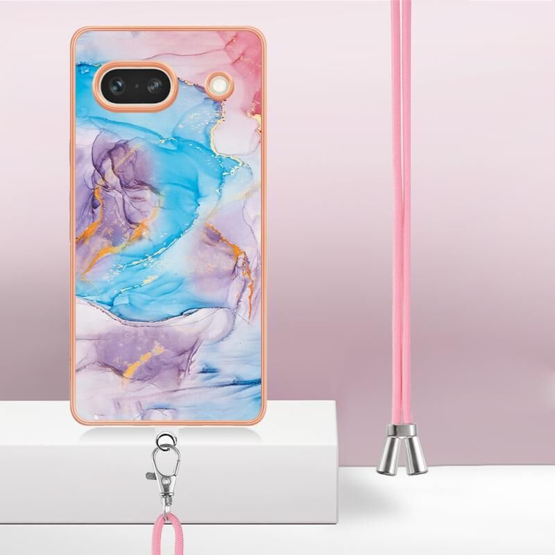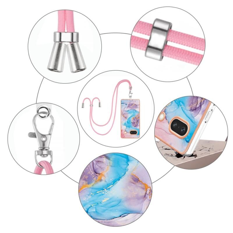 Θήκη τηλεφώνου Google Pixel 7a με ηλεκτρολυτική επιμετάλλωση IMD TPU με κορδόνι (Ροζ Λέπια)