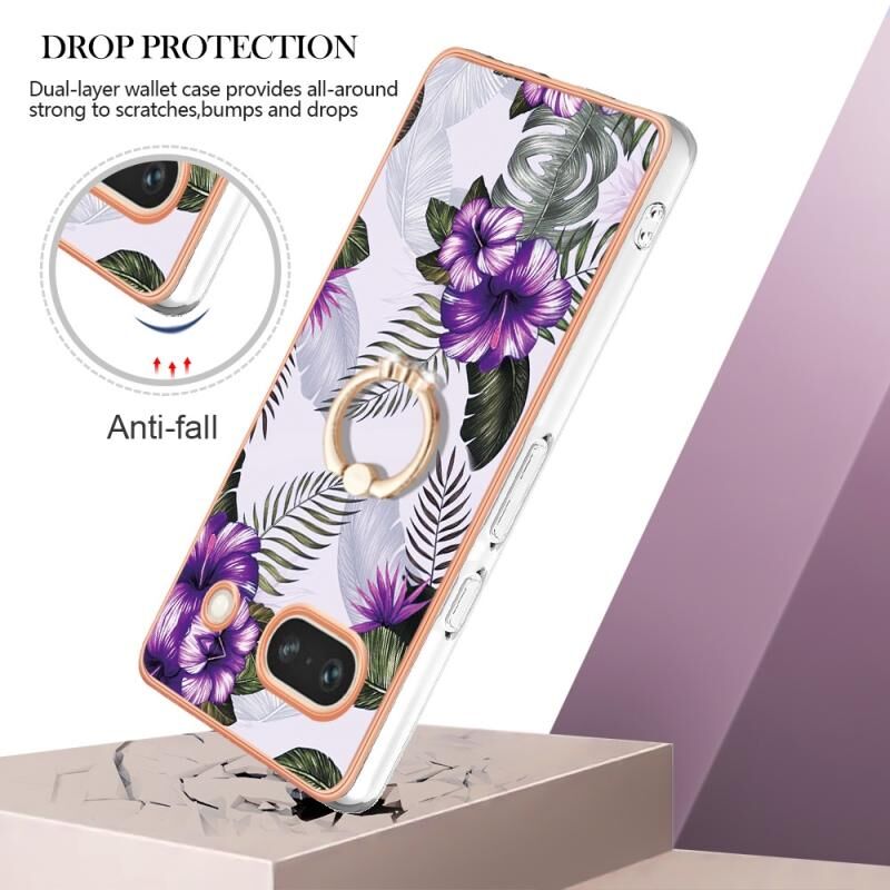 For Google Pixel 7a Electroplating IMD TPU Phone Case with Ring(Purple Flower)