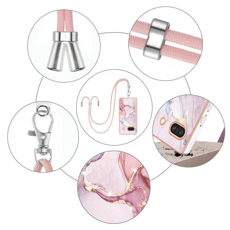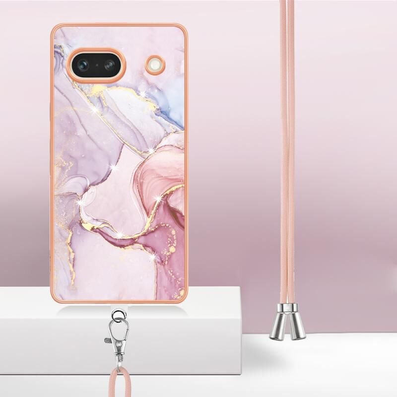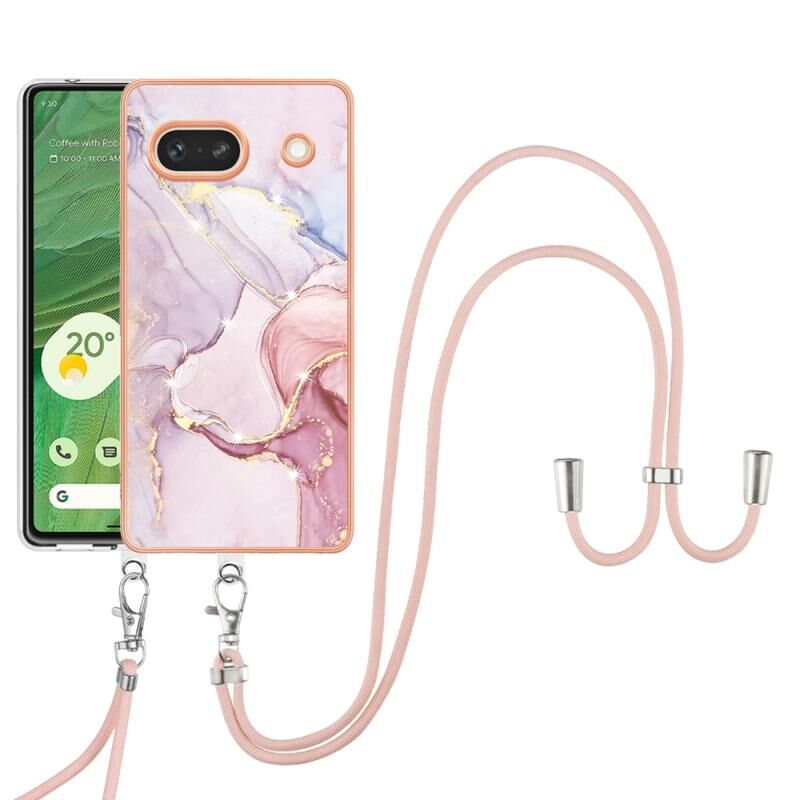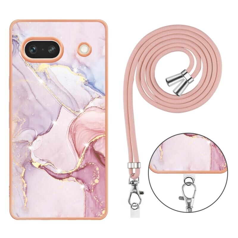 Θήκη τηλεφώνου για Google Pixel 7a με επιμετάλλωση, σχέδιο μάρμαρου, IMD διπλής όψης με κορδόνι (Μωβ 001)