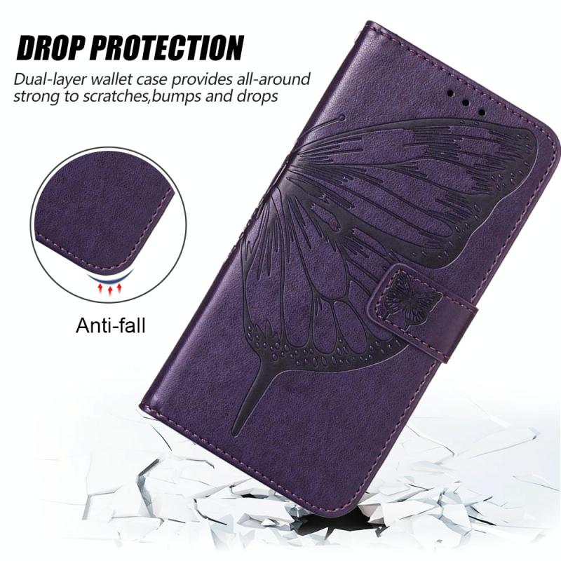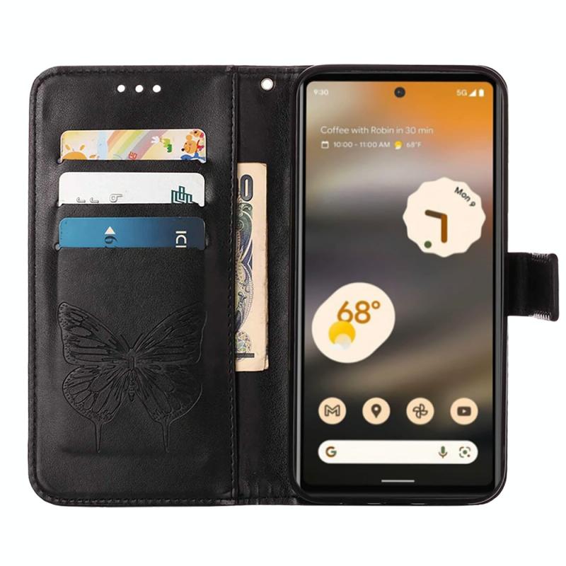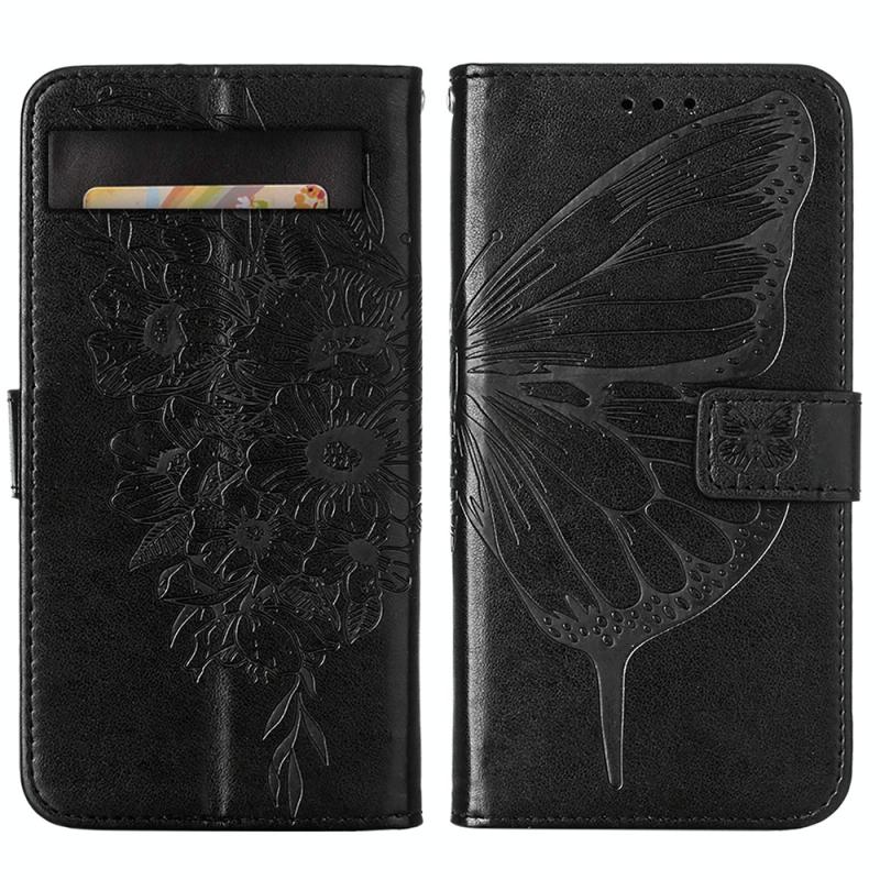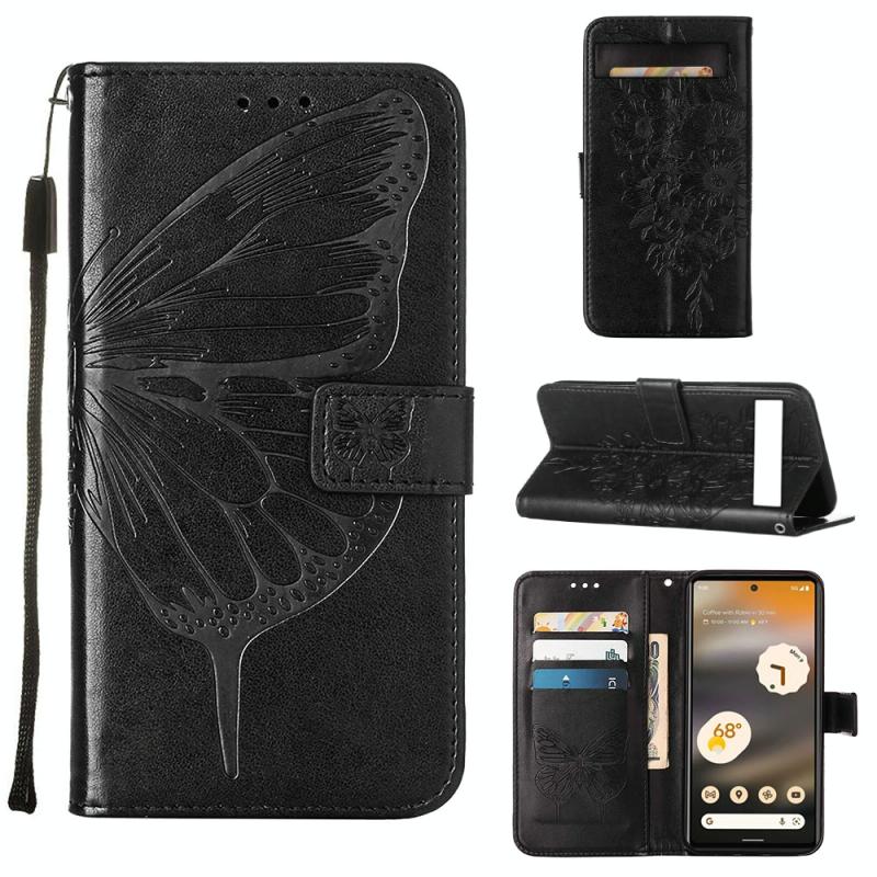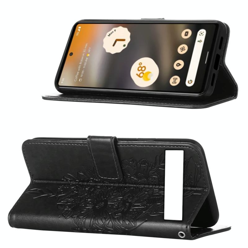 Θήκη τηλεφώνου από δέρμα με ανάγλυφο σχέδιο πεταλούδας, τύπου flip, για Google Pixel 7a (Μαύρο)