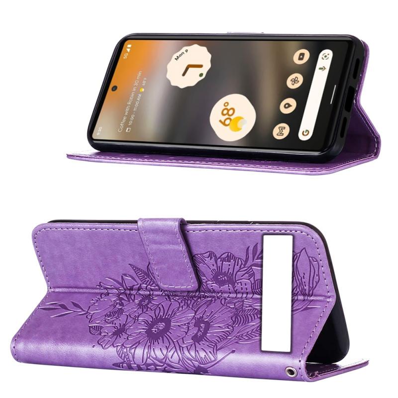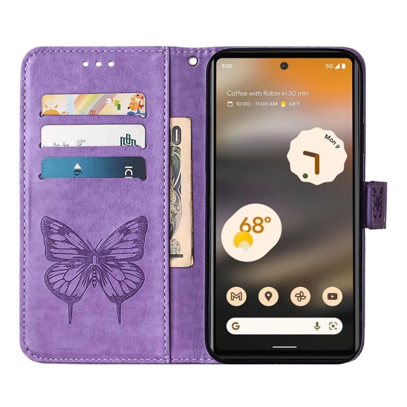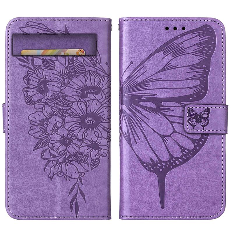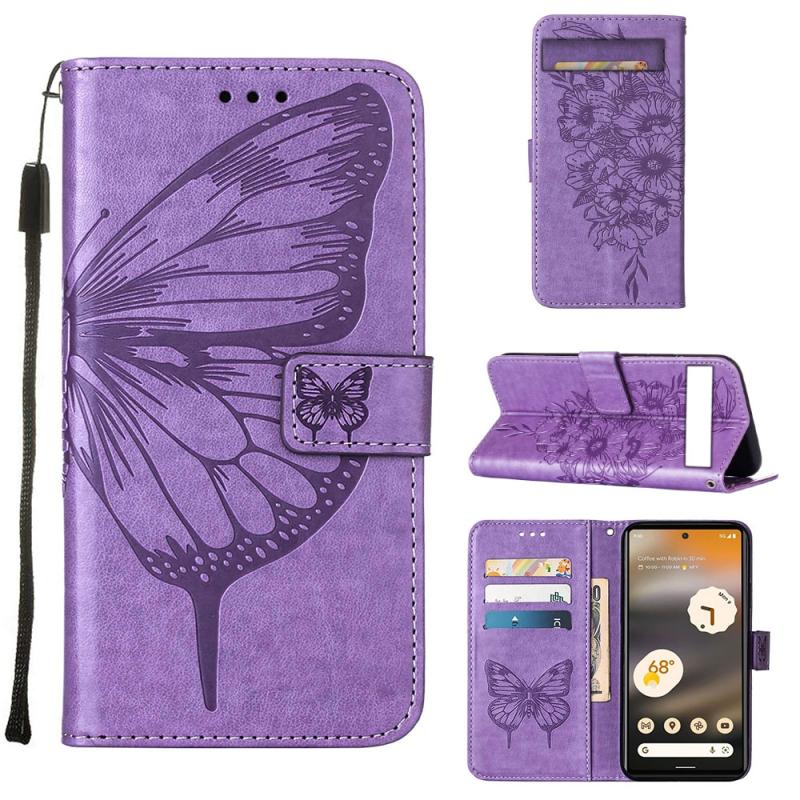 Θήκη τηλεφώνου από δέρμα με ανάγλυφο σχέδιο πεταλούδας, τύπου flip, για Google Pixel 7a (Γκρι)