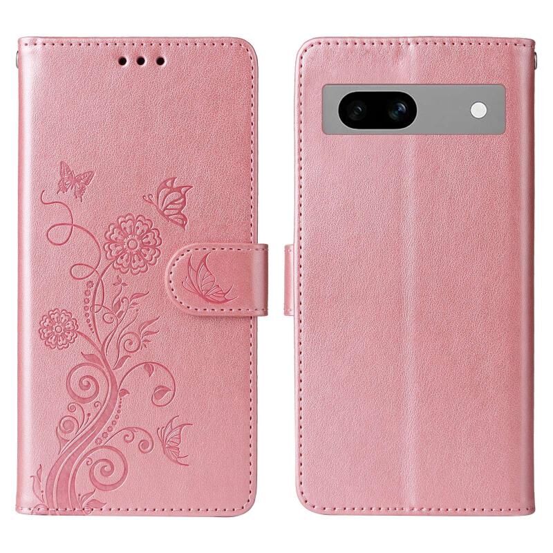 Θήκη τηλεφώνου από δέρμα με ανάγλυφα σχέδια πεταλούδας και λουλουδιών για Google Pixel 7a (Μωβ)