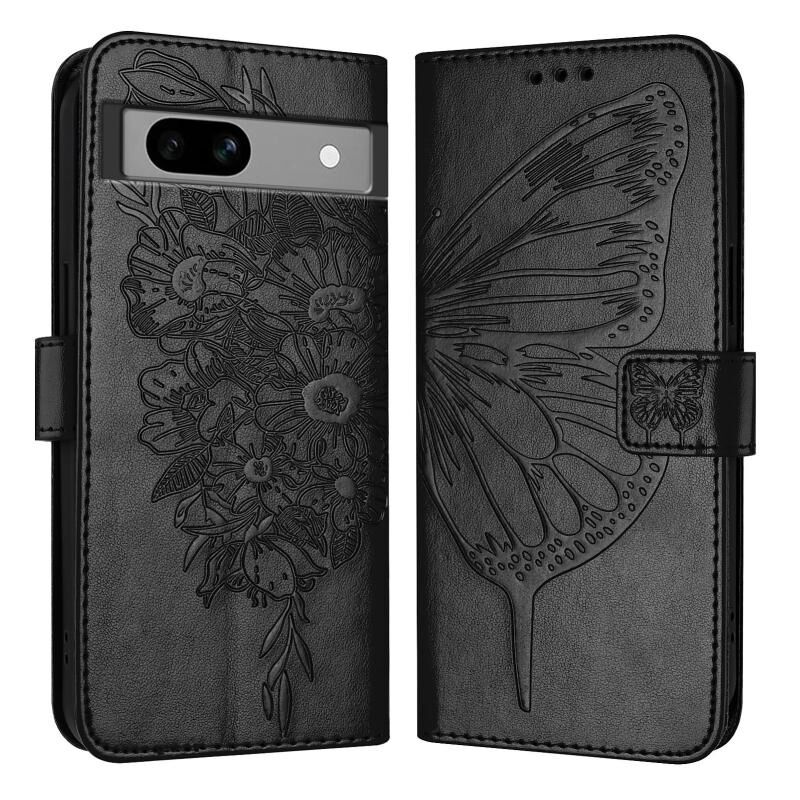For Google Pixel 7a Embossed Butterfly Leather Phone Case(Black)