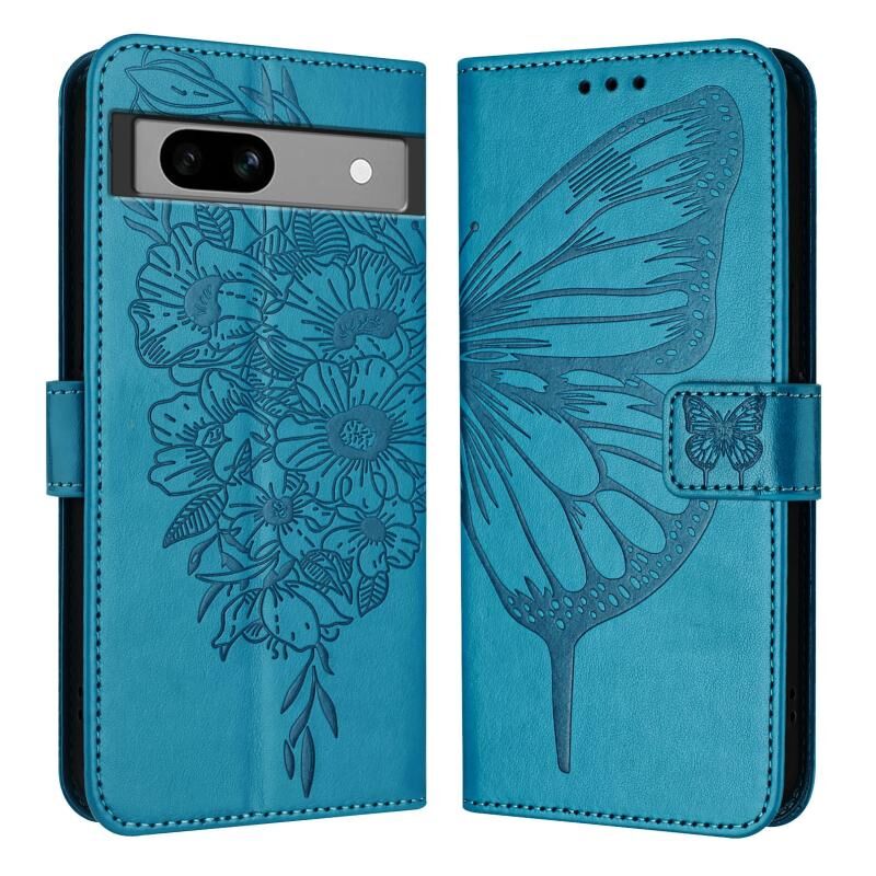 For Google Pixel 7a Embossed Butterfly Leather Phone Case(Blue)