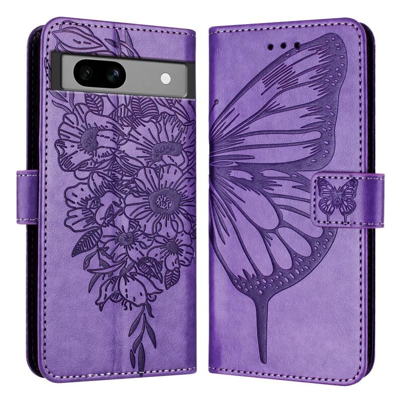 For Google Pixel 7a Embossed Butterfly Leather Phone Case(Purple)
