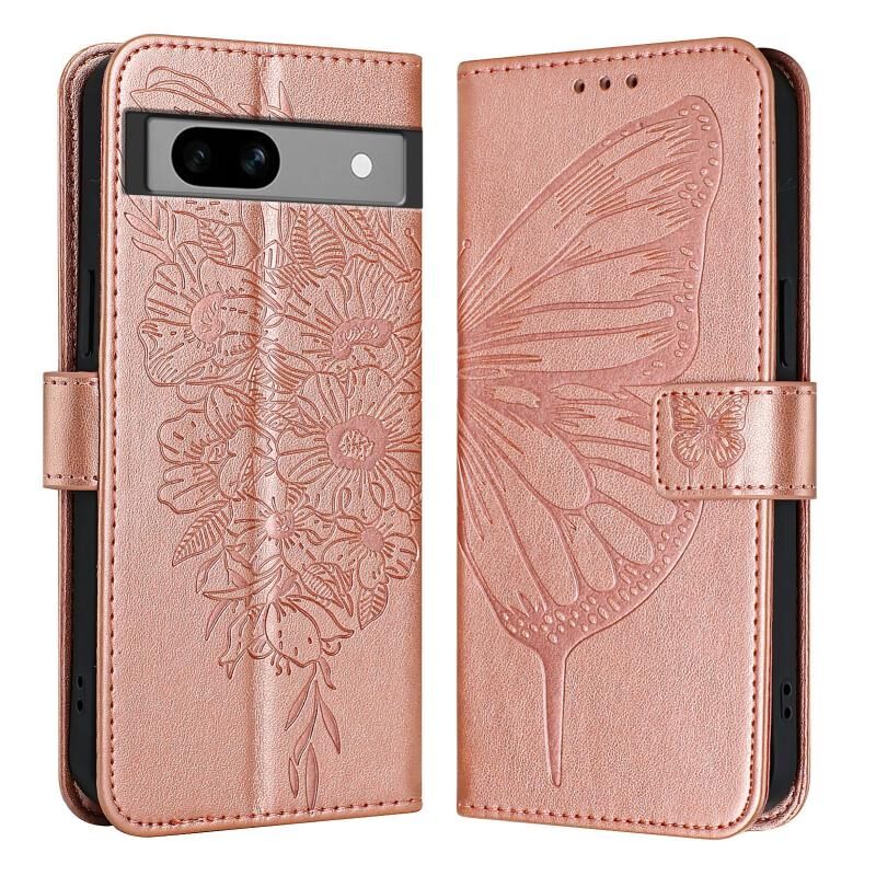 For Google Pixel 7a Embossed Butterfly Leather Phone Case(Rose Gold)