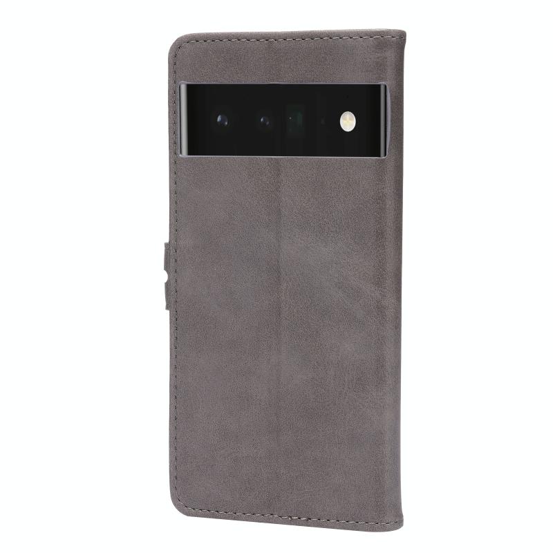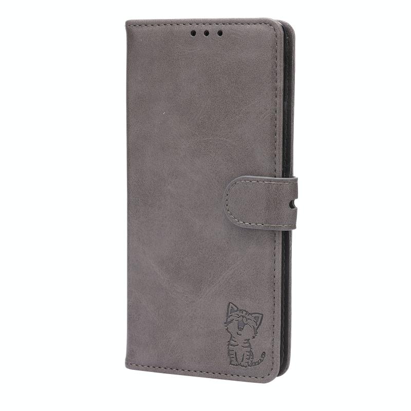 Θήκη τηλεφώνου από δέρμα με σχέδιο χαρούμενης γάτας σε ανάγλυφο για Google Pixel 7a (Γκρι)
