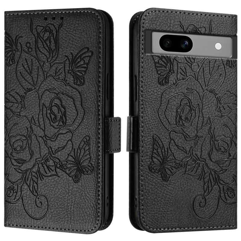 For Google Pixel 7a Embossed Rose RFID Anti-theft Leather Phone Case(Black)