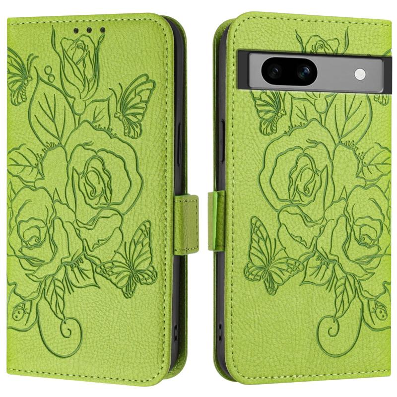 For Google Pixel 7a Embossed Rose RFID Anti-theft Leather Phone Case(Green)