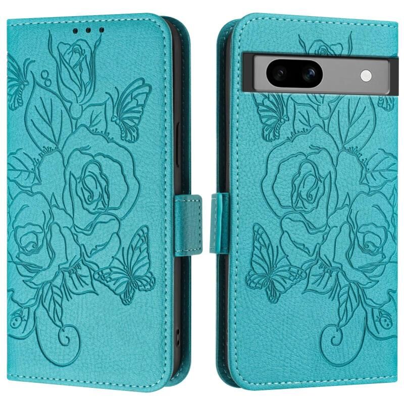 For Google Pixel 7a Embossed Rose RFID Anti-theft Leather Phone Case(Light Blue)