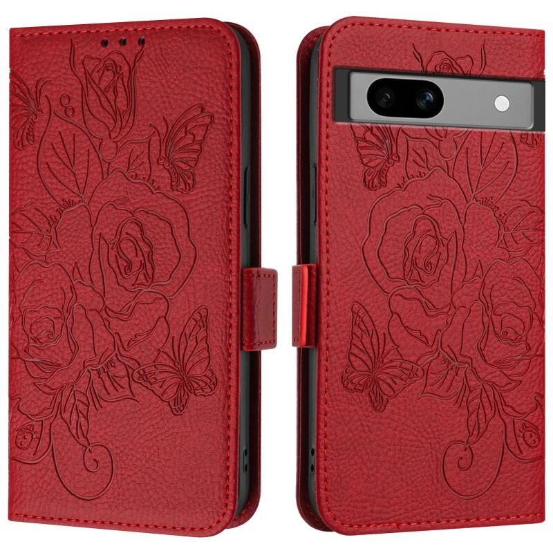 For Google Pixel 7a Embossed Rose RFID Anti-theft Leather Phone Case(Red)