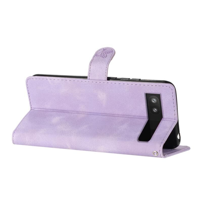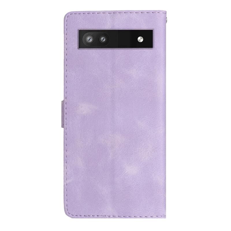 Θήκη τηλεφώνου δερμάτινη με ανάγλυφο σχέδιο λουλουδιών και πεταλούδας για Google Pixel 7a (Μωβ)