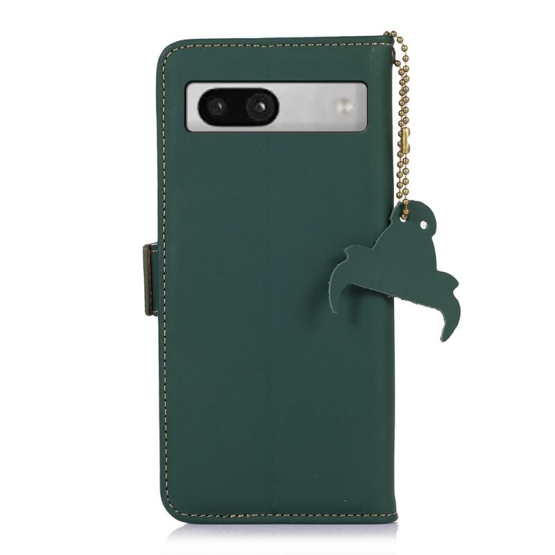 Θήκη τηλεφώνου από γνήσιο δέρμα με μαγνητικό κλείσιμο και προστασία RFID για Google Pixel 7a (Πράσινο)