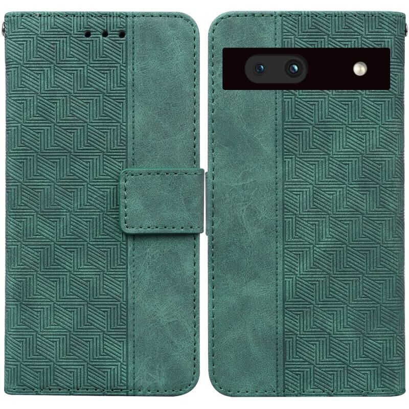 Για το Google Pixel 7a Γεωμετρική ανάγλυφη θήκη τηλεφώνου από δέρμα (πράσινο)