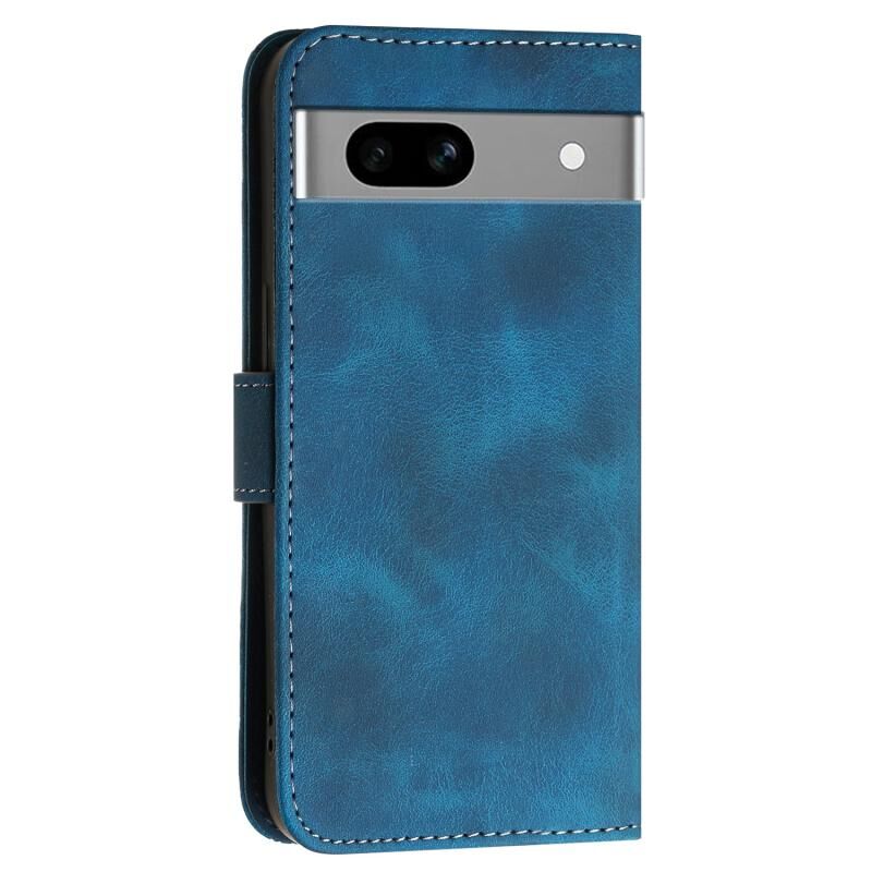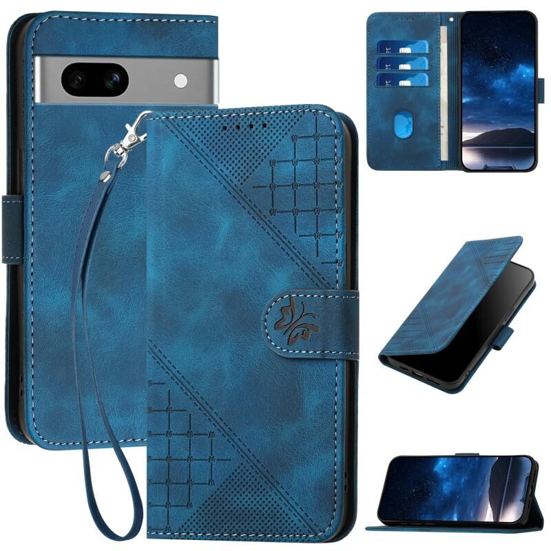 Θήκη τηλεφώνου δερμάτινη με ανάγλυφο σχέδιο πεταλούδας σε πλέγμα για Google Pixel 7a με κορδόνι (Σκούρο Μπλε)