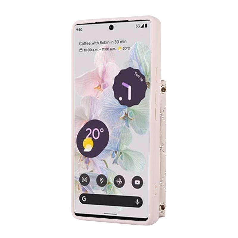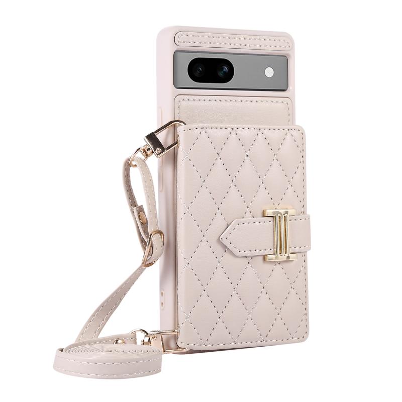 For Google Pixel 7a Horizontal Card Bag Phone Case with Dual Lanyard(Beige)