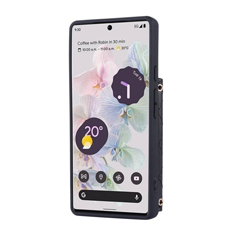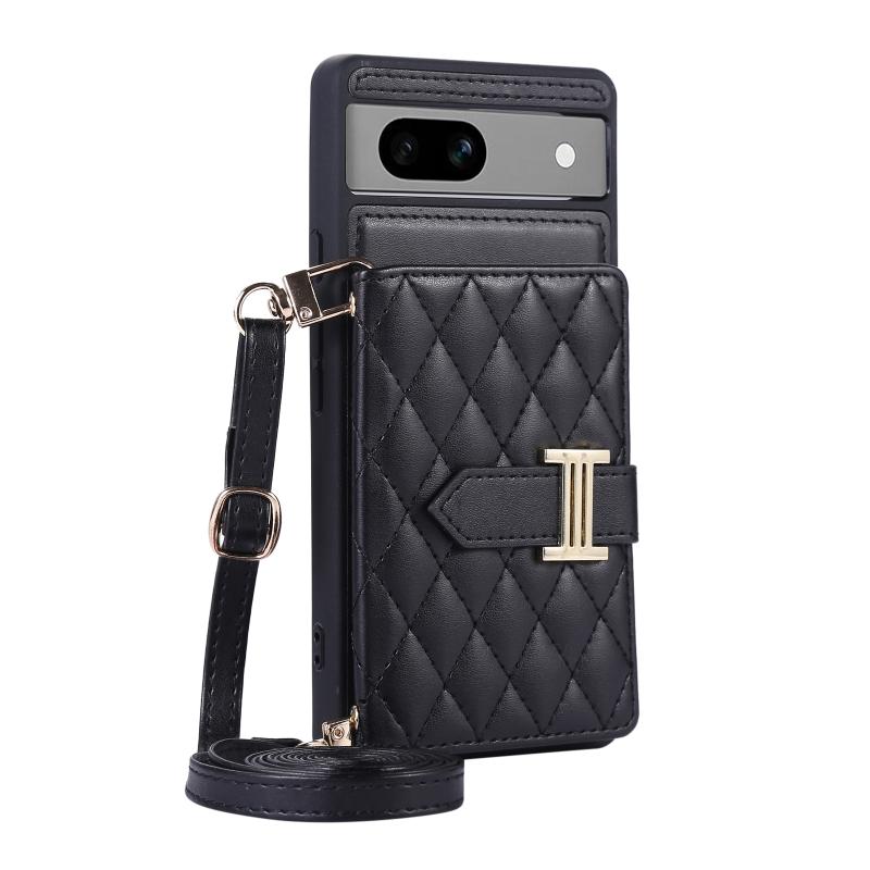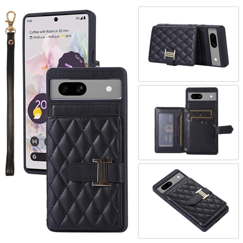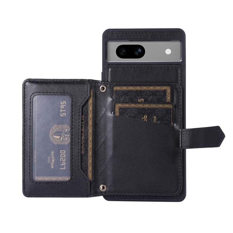 For Google Pixel 7a Horizontal Card Bag Phone Case with Dual Lanyard(Black)