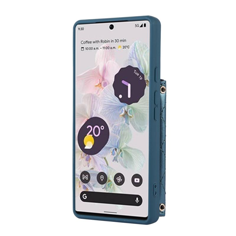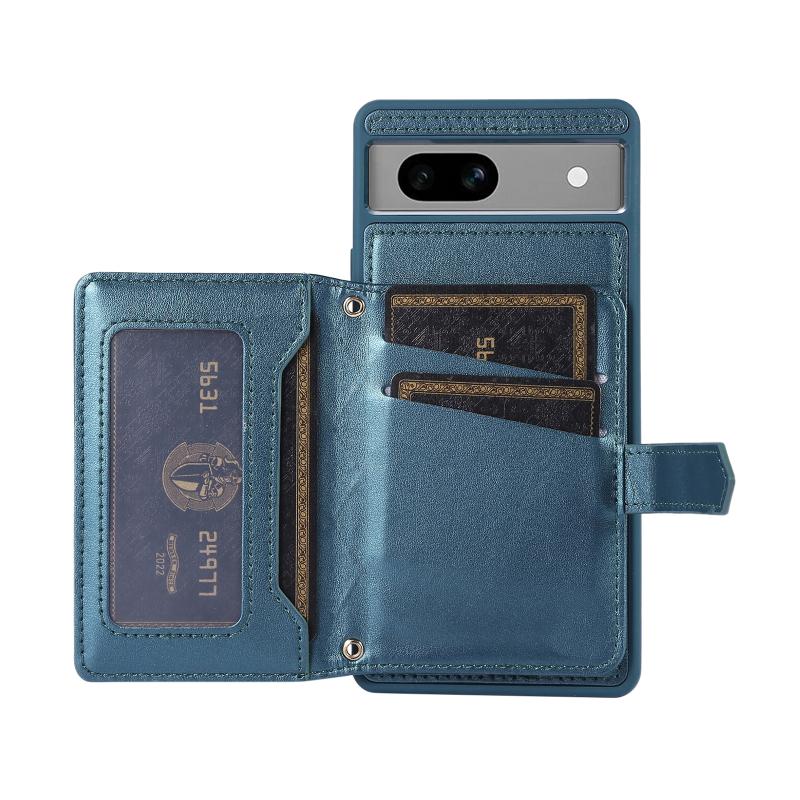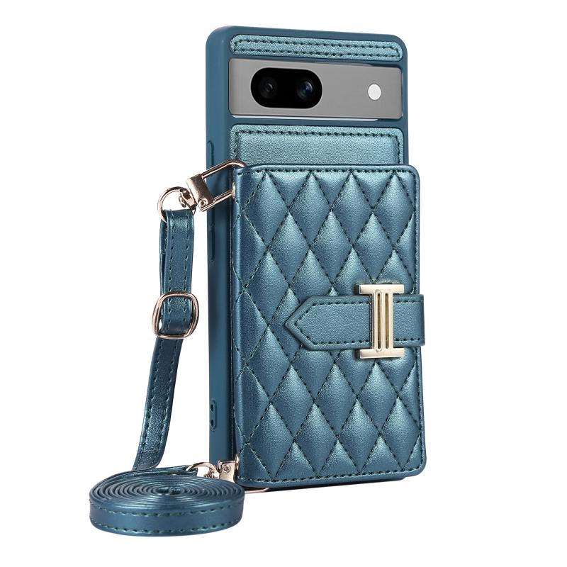 For Google Pixel 7a Horizontal Card Bag Phone Case with Dual Lanyard(Dark Green)
