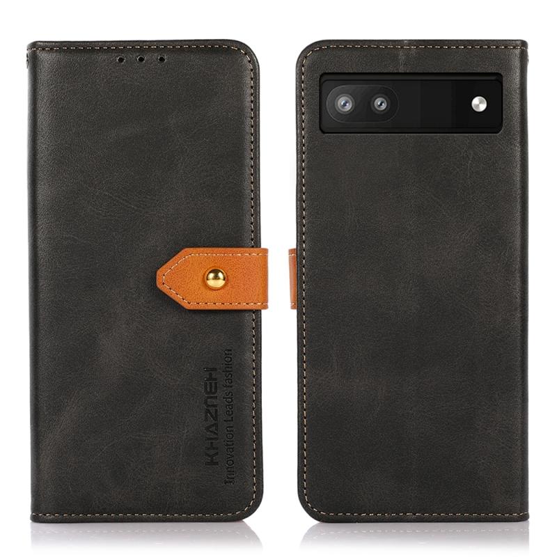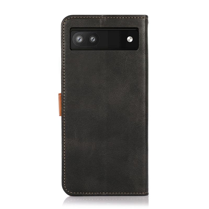 Θήκη τηλεφώνου από δέρμα με υφή δερμάτινου μοσχαριού διπλής απόχρωσης KHAZNEH για Google Pixel 7a (Μαύρο)