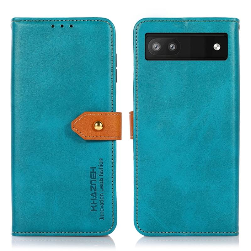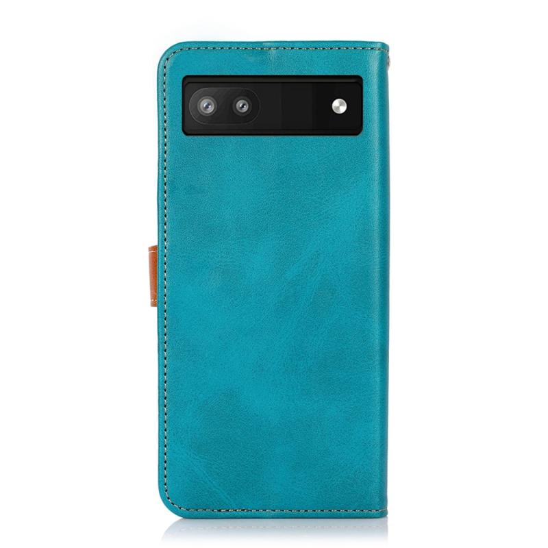 Θήκη τηλεφώνου από δέρμα με υφή δερμάτινου μοσχαριού διπλής απόχρωσης KHAZNEH για Google Pixel 7a (Μπλε)