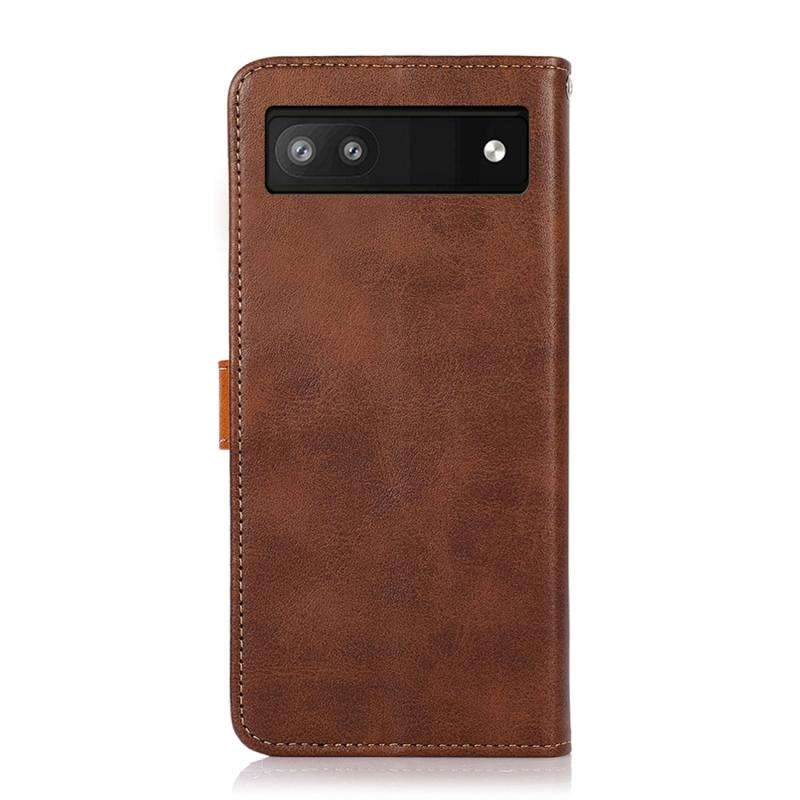 Θήκη τηλεφώνου από δέρμα με υφή δερμάτινου μοσχαριού διπλής απόχρωσης KHAZNEH για Google Pixel 7a (Καφέ)