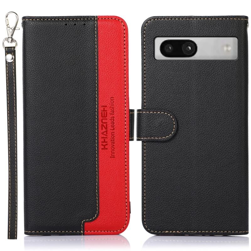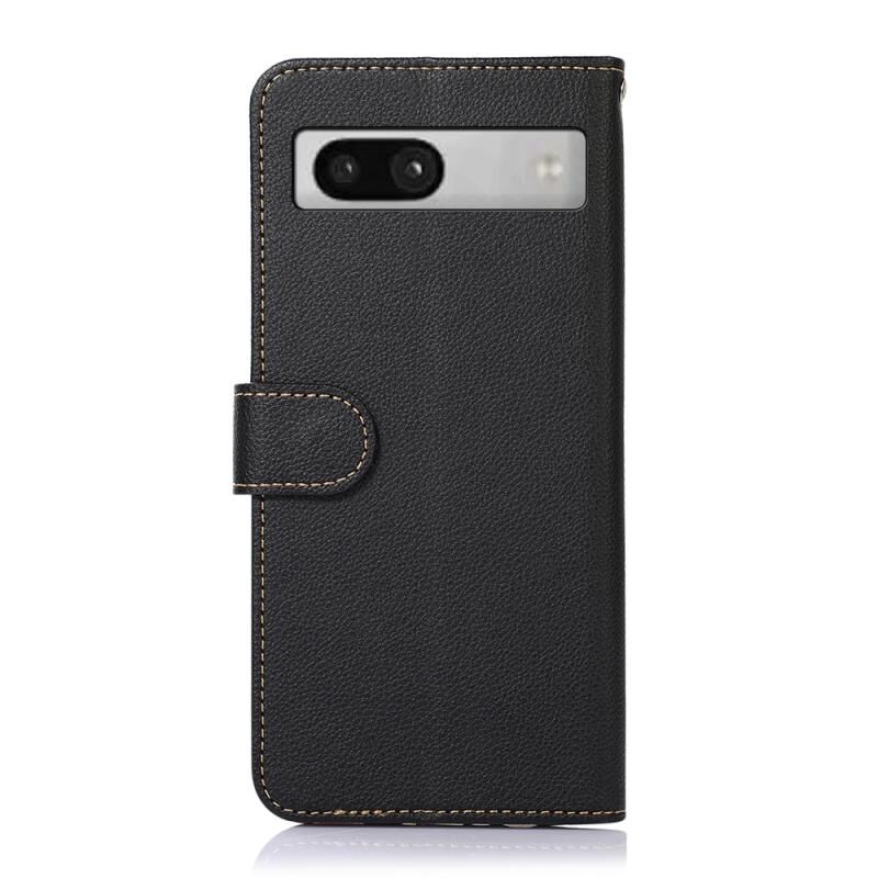 Θήκη κινητού τηλεφώνου Google Pixel 7a KHAZNEH με δέρμα υφής λύτσι και προστασία RFID (Καφέ)