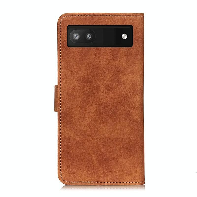 Θήκη τηλεφώνου από δέρμα με αναδιπλούμενο σχέδιο και ανάγλυφη υφή Retro KHAZNEH για Google Pixel 7a (Καφέ)