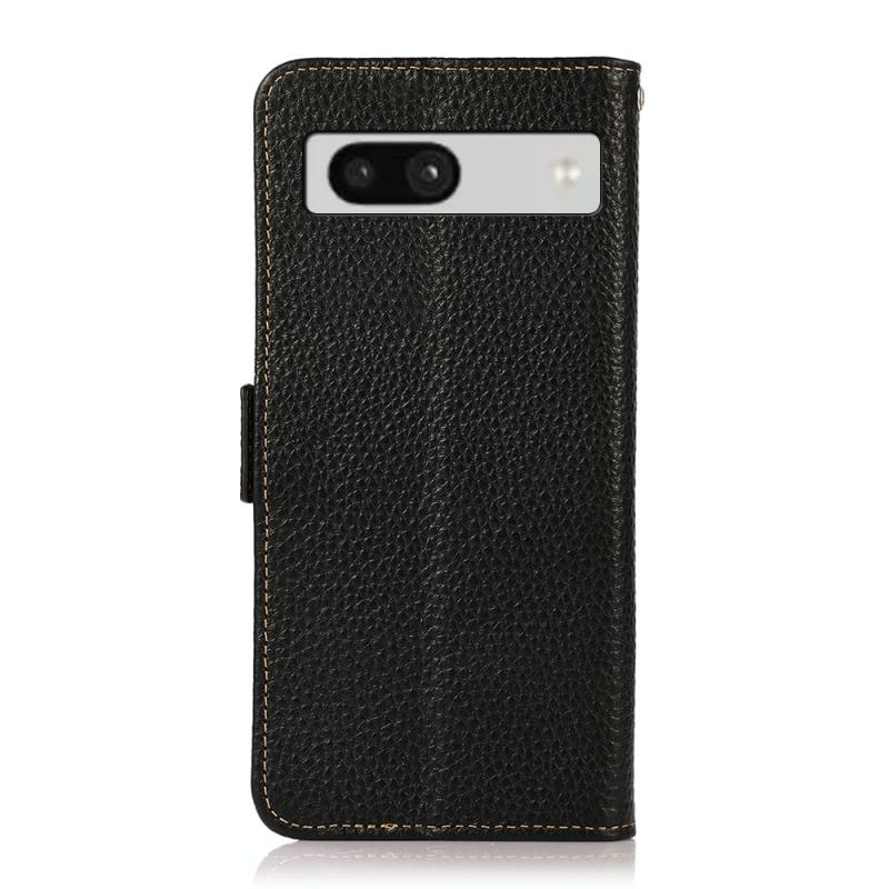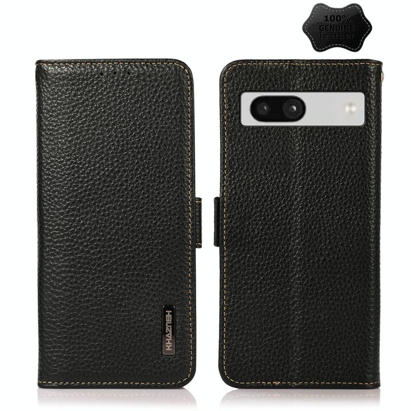 Θήκη τηλεφώνου Google Pixel 7A KHAZNEH με μαγνητικό κλείσιμο, από γνήσιο δέρμα Litchi και προστασία RFID (Μαύρο)