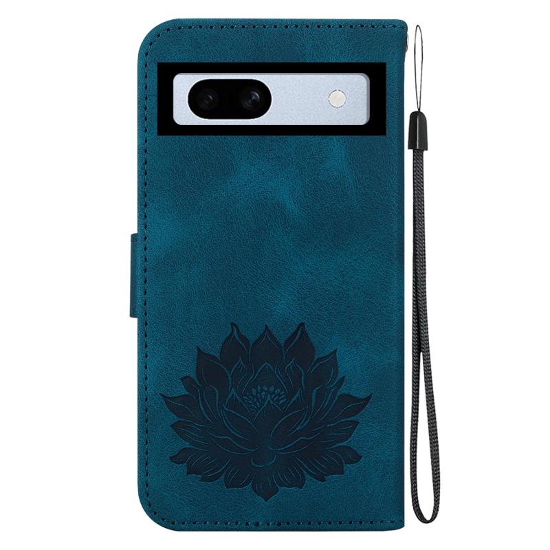 For Google Pixel 7a Lotus Embossed Leather Phone Case(Dark Blue)
