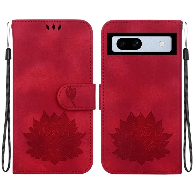 For Google Pixel 7a Lotus Embossed Leather Phone Case(Red)
