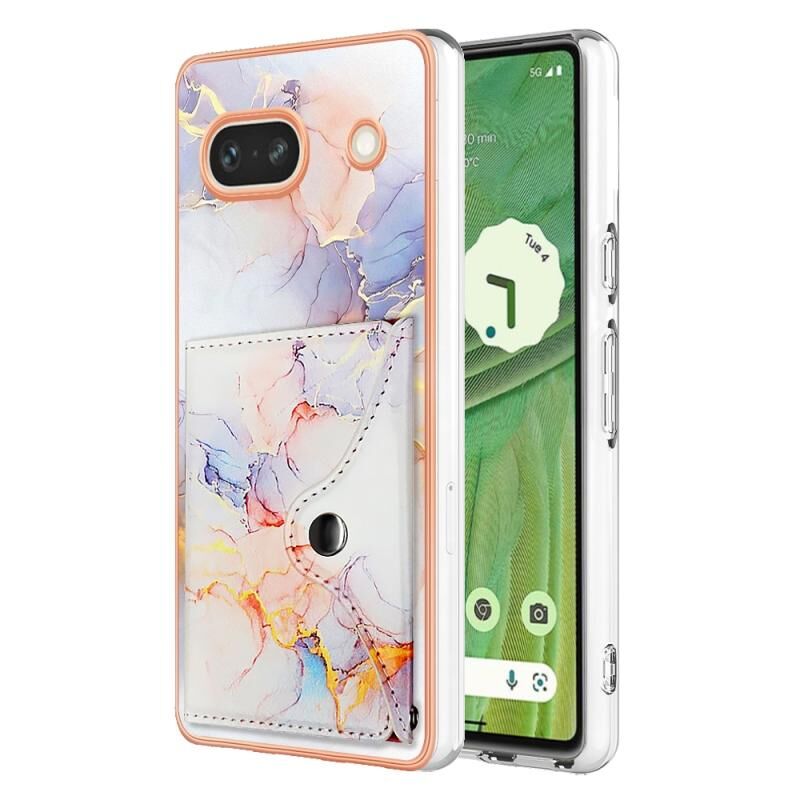 Θήκη κινητού τηλεφώνου με θήκη κάρτας IMD με σχέδιο μαρμάρου για Google Pixel 7a (Λευκό Γαλαξιακό Μάρμαρο)