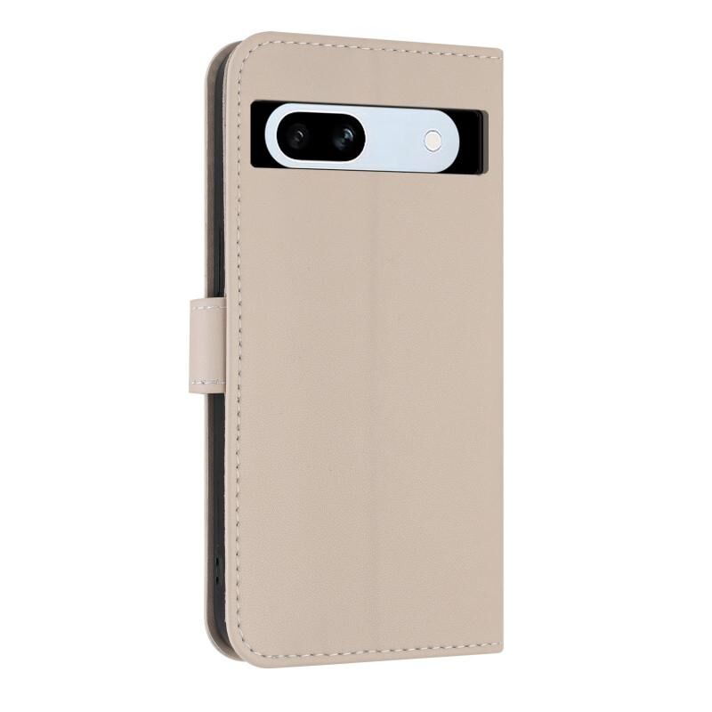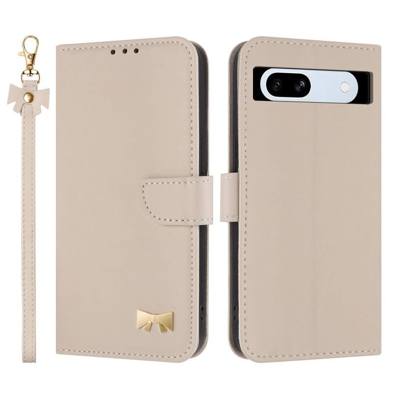 For Google Pixel 7a Metal Bow Leather Phone Case with Hand Strap(Apricot)